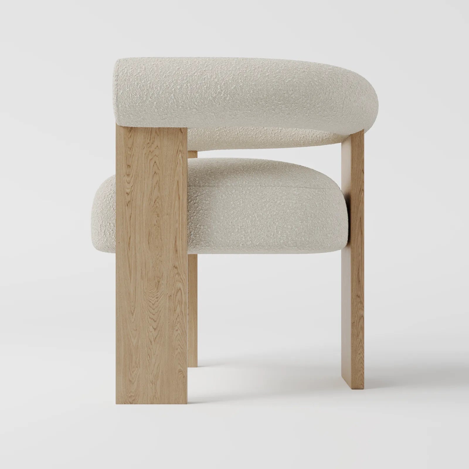 Designed with modern luxury, the Tokyo Dining Chair features a striking tubular backrest that wraps around to form a U-shape, offering both style and comfort. The unique three-legged design, crafted from solid wood, extends from the floor to the backrest, creating a seamless and sophisticated look. Its open backrest adds an airy, contemporary feel to any space.