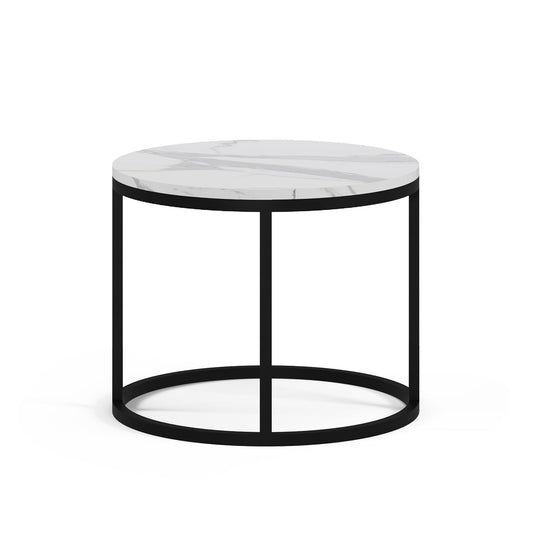 The Duo-Marble Set: Modern Tiered Nesting Tables with Slim Black Circular Supports