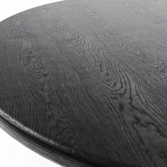 Contemporary Round Black Wood Coffee Table with Triple Spherical Globe Legs