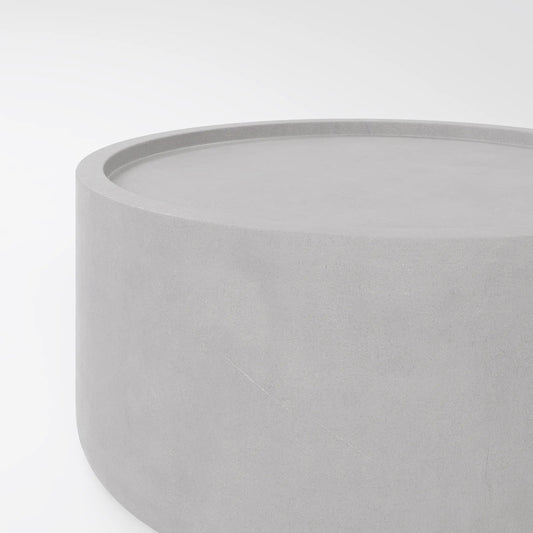 Contemporary Round Light Grey Concrete Coffee Table with Recessed Tray Top