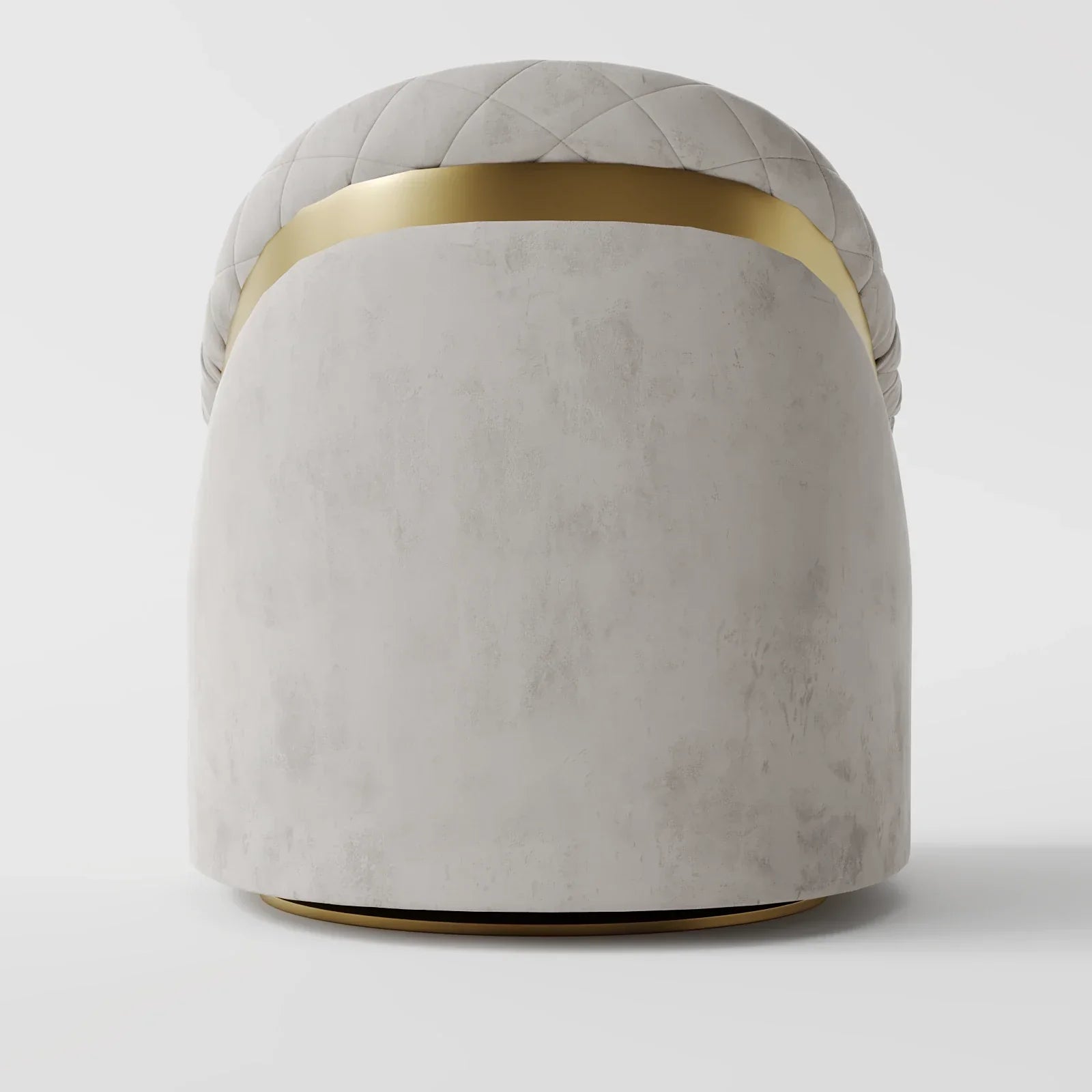 The Allure Armchair is a beautifully designed piece, crafted to bring bold elegance and modern sophistication to your living space. Its striking geometric stitching on the backrest, paired with a sleek gold-colored insert, creates a refined silhouette that instantly elevates any room. The blend of artful details and contemporary design adds a touch of luxury and uniqueness to your décor.