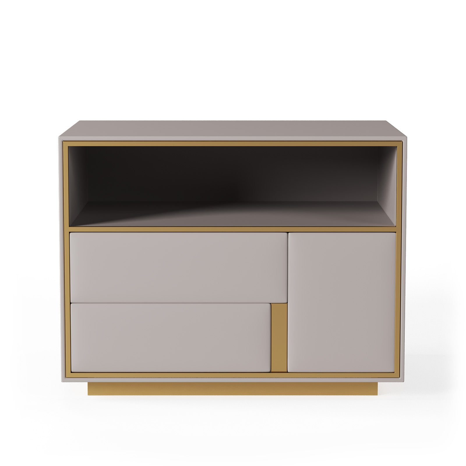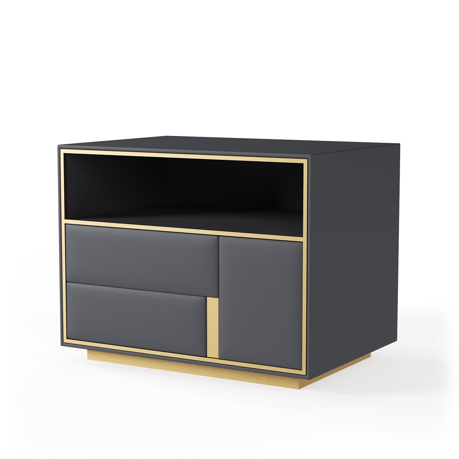 The Art Deco Bedside Table is a beautifully designed piece that effortlessly combines contemporary style with exceptional functionality. Its sleek, geometric silhouette features a luxurious white wood finish, complemented by refined golden steel accents that enhance its modern appeal.