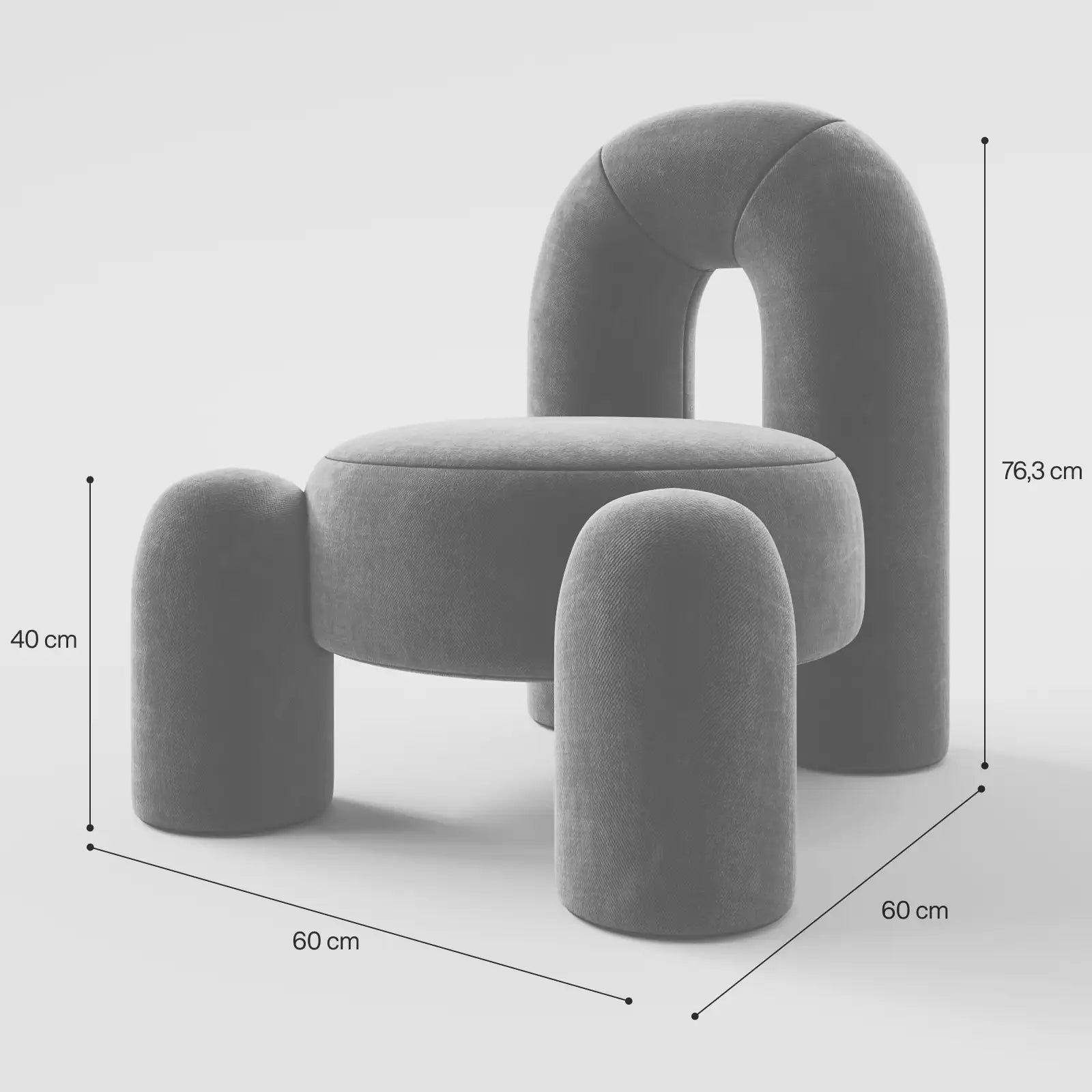 The Lumi Accent Chair is a striking and modern piece, blending mid-century modern charm with a contemporary twist. Its sculptural design features a curved backrest and thick, rounded legs, creating a bold, organic silhouette that stands out in any room.
