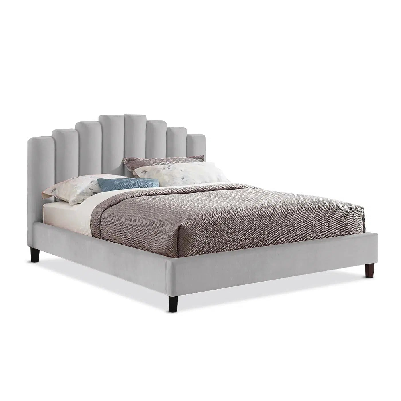 The Bed Antonio from our TUKA Collection upholstered frame has a thick, vertical headboard that provides very comfortable and soft support for your back. The embroidered headboard is ideal for relaxing against while indulging in leisure activities like reading, and watching television. The modern headboard is in velvet and spans over the entire visible surface with a pattern of vertical lines and a consistent thread tone. The fabric is very soft on the skin and resistant to tearing, pilling, and colorfastness. Create a coordinated bedroom by combining this bedframe with other furniture from the TUKA Collection series.